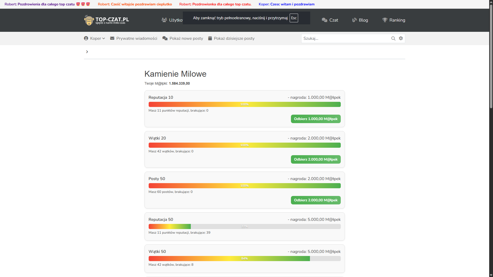 Każdy kamień milowy ma określone wymaganie, np. liczba punktów reputacji, postów lub wątków.